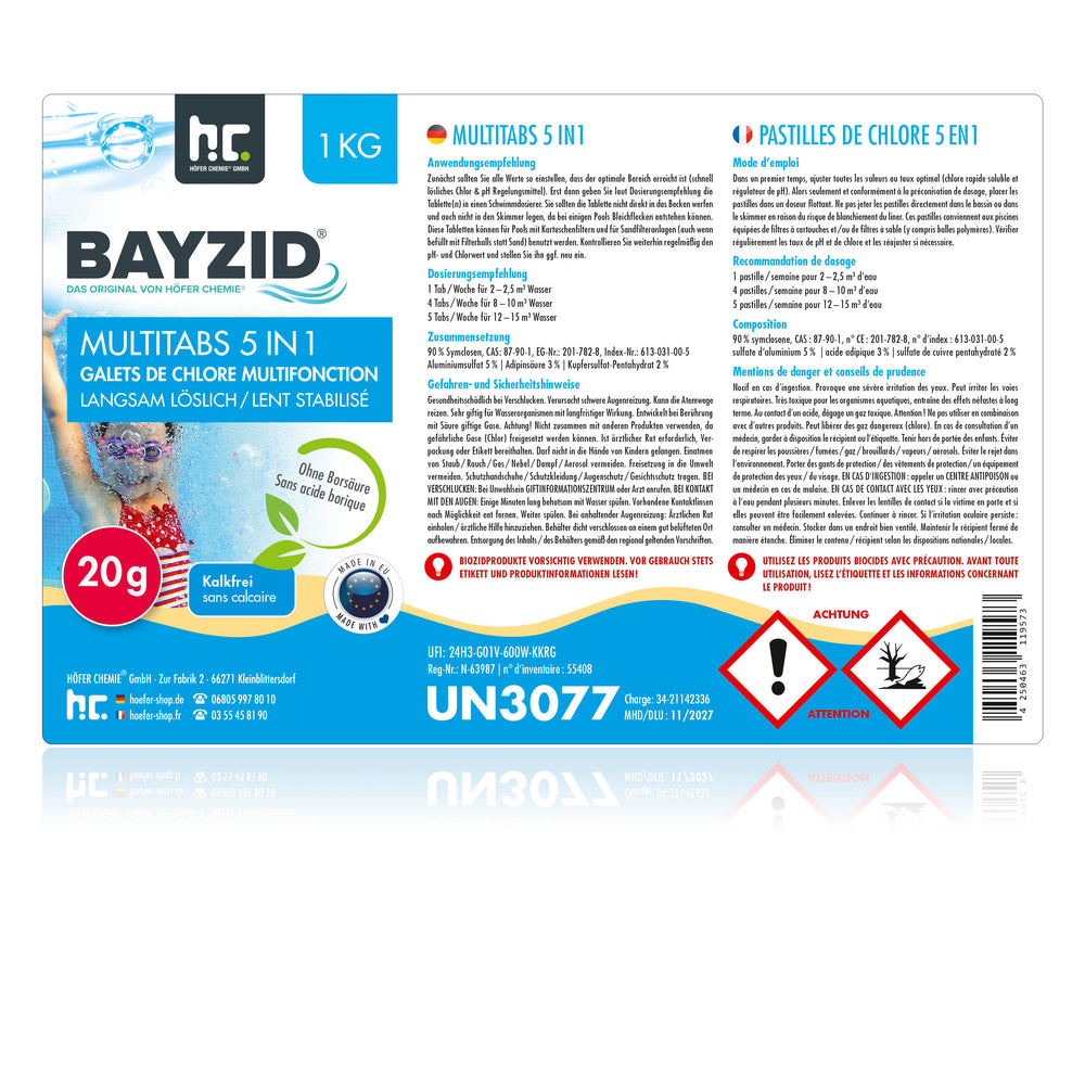 Weiterlesen1 kg BAYZID® Multitabs 20g 5in1 für Pools - 1x 1 kg ist auf Lager und wird versandt, sobald es wieder verfügbar ist