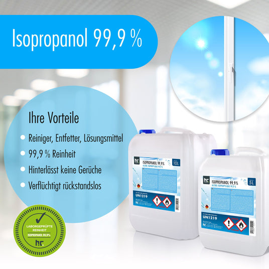 Isopropanol, auch Ispopropylalkohol, IPA oder 2-Propanol genannt, ist ein starkes Lösungsmittel, das nicht nur zur Entfettung von verschiedenen Bereichen, sondern auch zur einfachen Reinigung geeignet ist. Die vielseitigen Verwendungsmöglichkeiten ersetzen gleich mehrere Haushaltsreiniger und überraschenderweise eignet es sich auch für ganz ungeahnte Bereiche. Jetzt bestellt und schnell geliefert. Maße des Kanisters: H25 cm x L 19,5 cm x B 14,5 cm.