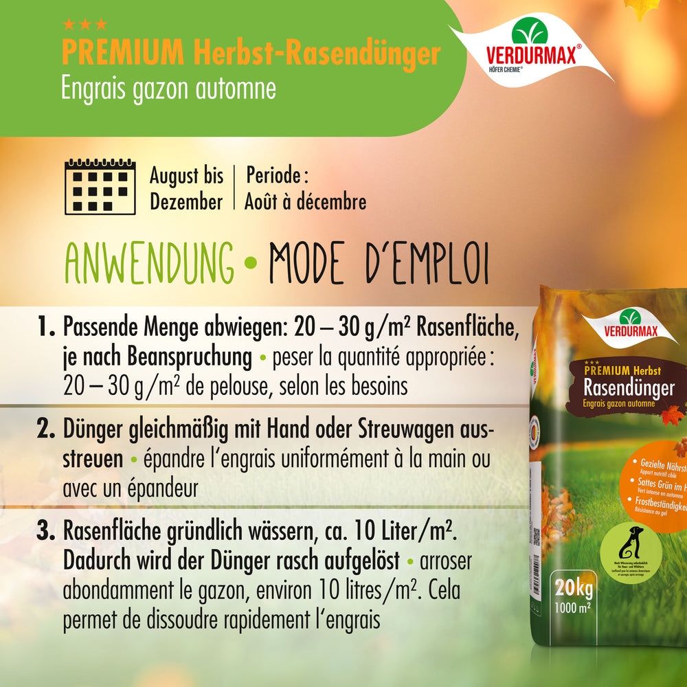 20 kg VERDURMAX® Premium Herbst Rasendünger 20 kg Premium Herbst Rasendünger