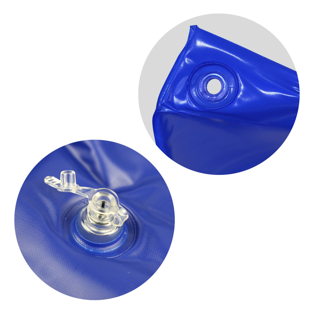 Die blauen Luftkissen für Pools sind nicht nur im Winter überaus praktisch, sondern sorgen das ganze Jahr über für sauberes Wasser im abgedeckten Pool. Wird der Swimmingpool mit einer Plane abgedeckt, erzeugen die aufblasbaren Poolkissen darunter eine leichte Wölbung an der Oberfläche. Dadurch kann Regenwasser einfach zum Rand hin ablaufen, wobei natürliche Verunreinigungen auf natürliche Weise von der Poolplane gespült werden. Poolkissen sind im Rundpool ebenso nützlich wie im ausladenden XXL Pool und können immer wieder verwendet werden. Materialstärke: 2 mm.