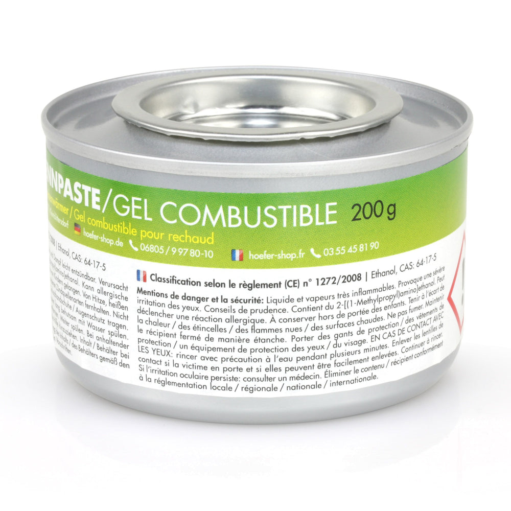 Ob beim Chafing-Dish in der Gastronomie oder zu Hause zum Warmhalten von Speisen auf Buffets: Unsere Brennpaste ist die sichere, saubere und einfache Lösung für das zuverlässige Warmbleiben von Speisen über mehrere Stunden. Es handelt sich bei unserer Brennpaste um ein ungiftiges Gel auf der Basis von Bioethanol mit einem zugesetzten Verdickungsmittel. Die Brennpaste ist sofort nach Öffnen der Dose gebrauchsfertig. Die Dose lässt sich mit ihren Abmessungen von circa 85 mm im Durchmesser sowie rund 55 mm in der Höhe bequem handhaben. Das Anzünden der Brennpaste direkt in der Dose gelingt leicht und schnell. Es entwickelt sich eine heiße, jedoch nicht zu große Flamme für ein kulinarisch wie wirtschaftlich optimales Warmhalteresultat.