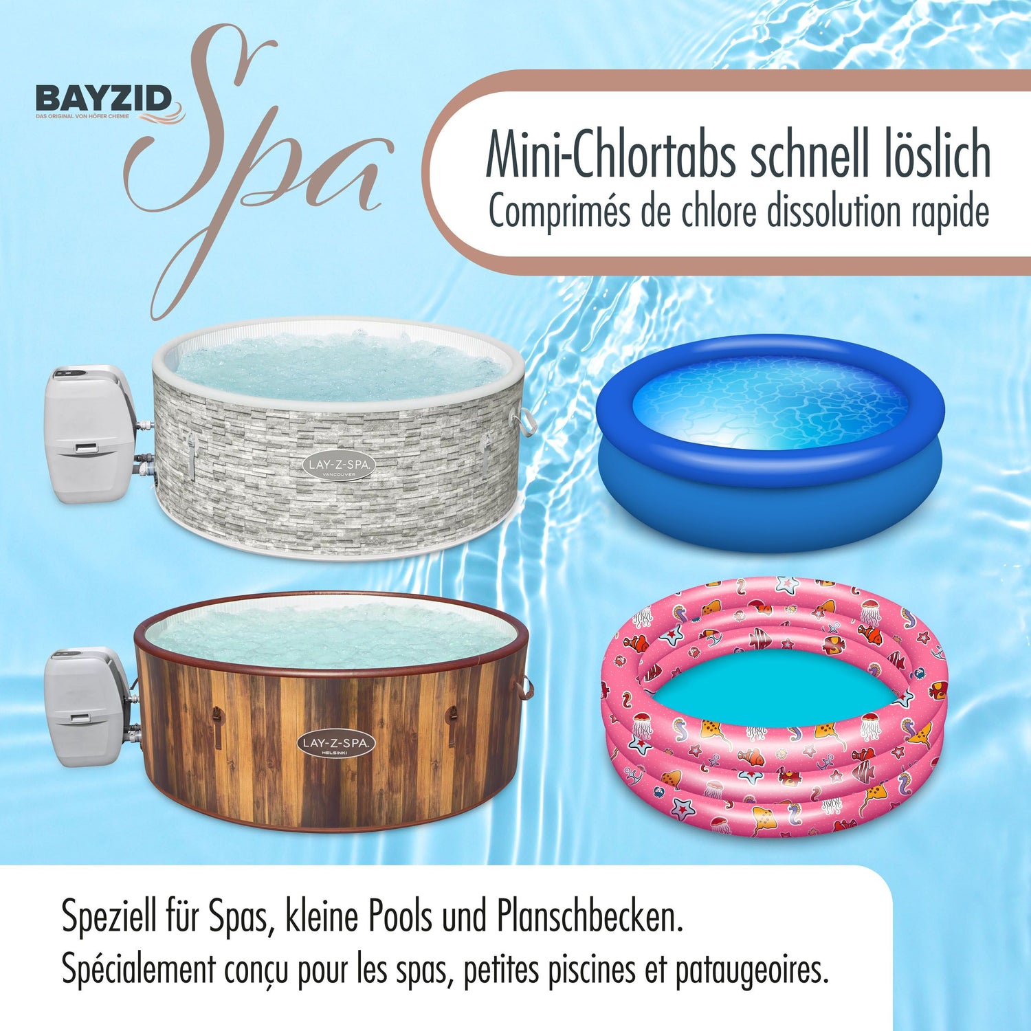 Wichtige Hinweise zur Anwendung der BAYZID® Chlor-schnell-Tabletten von Höfer Chemie in Ihrem Spa
