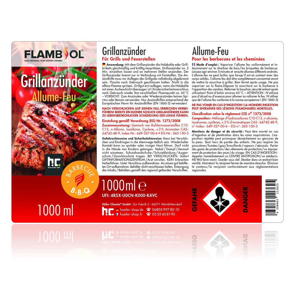 1 L FLAMBIOL® Grillanzünder Flüssig – Sauberer und zuverlässiger Anzünder für Grill, Kamin und Ofen
