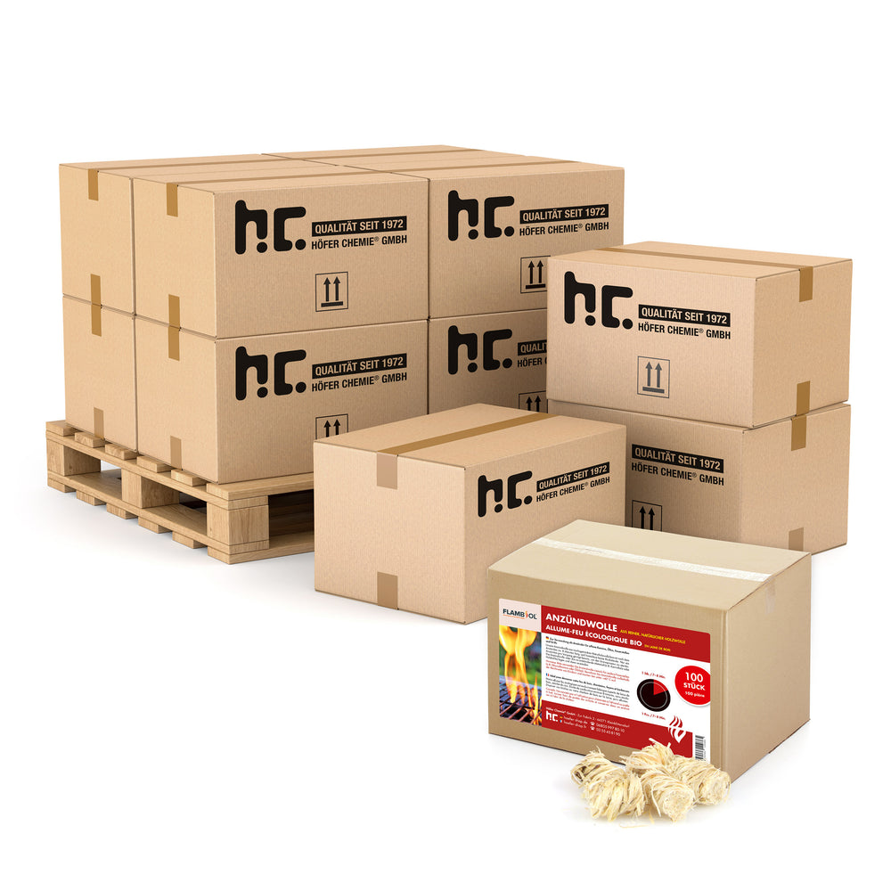 Das Produkt aus wachsgetränkter Naturholzwolle brennt nach dem Anzünden 8 bis 10 Minuten lang und hinterlässt keine Rückstände. Nur ein Anzünden pro Vorgang genügt bereits, um den Brennprozess zu starten. Wir führen Anzündwolle im praktischen Paket zu 100 Stück.