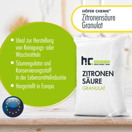 Unsere Produkte wie 25 kg Zitronensäure Granulat und 5 L Zitronensäure 50% flüssig bieten hochwertige Zitronensäure für verschiedene Anwendungen.