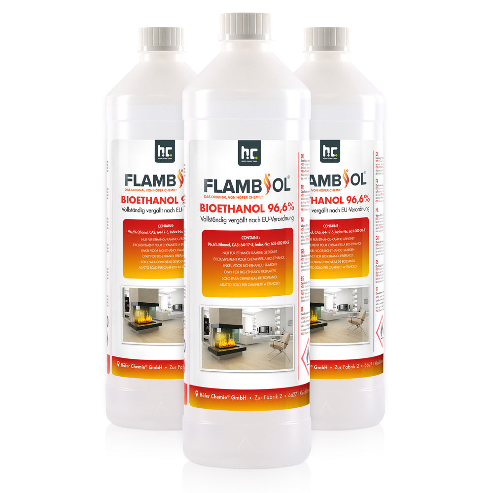 1 L FLAMBIOL® Bioethanol 96,6% Premium für Ethanol-Tischkamin - 1x 1 L ist auf Lager und wird versandt, sobald es wieder verfügbar ist