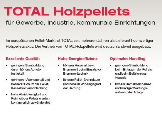 Der Heizwert der hochwertigen TOTAL Holzpellets liegt bei mindestens 4,6 kWh pro Kilogramm. Bitte beachten Sie die einzelnen Faktoren zur Ermittlung Ihres konkreten Bedarfs.