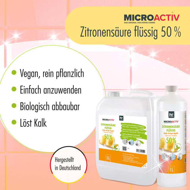 5 L Microactiv® Zitronensäure 50% flüssig Entkalker in Kanister - 1x 5 L ist auf Lager und wird versandt, sobald es wieder verfügbar ist