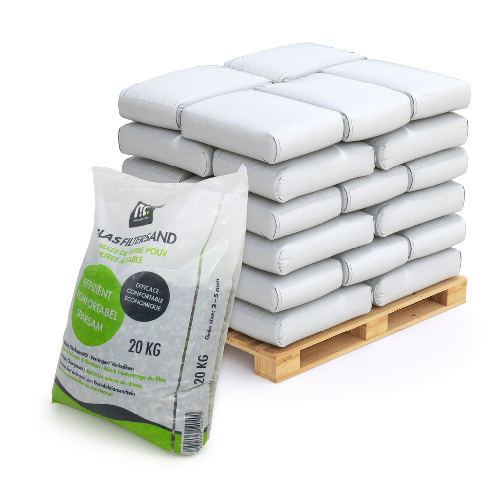 Lire la suite20 kg de granulés de verre grossier spécial pour filtres à sable, granulométrie de 2 à 5 mm. - 1x 20 kg est en rupture de stock et sera expédié dès qu’il sera de retour en stock.