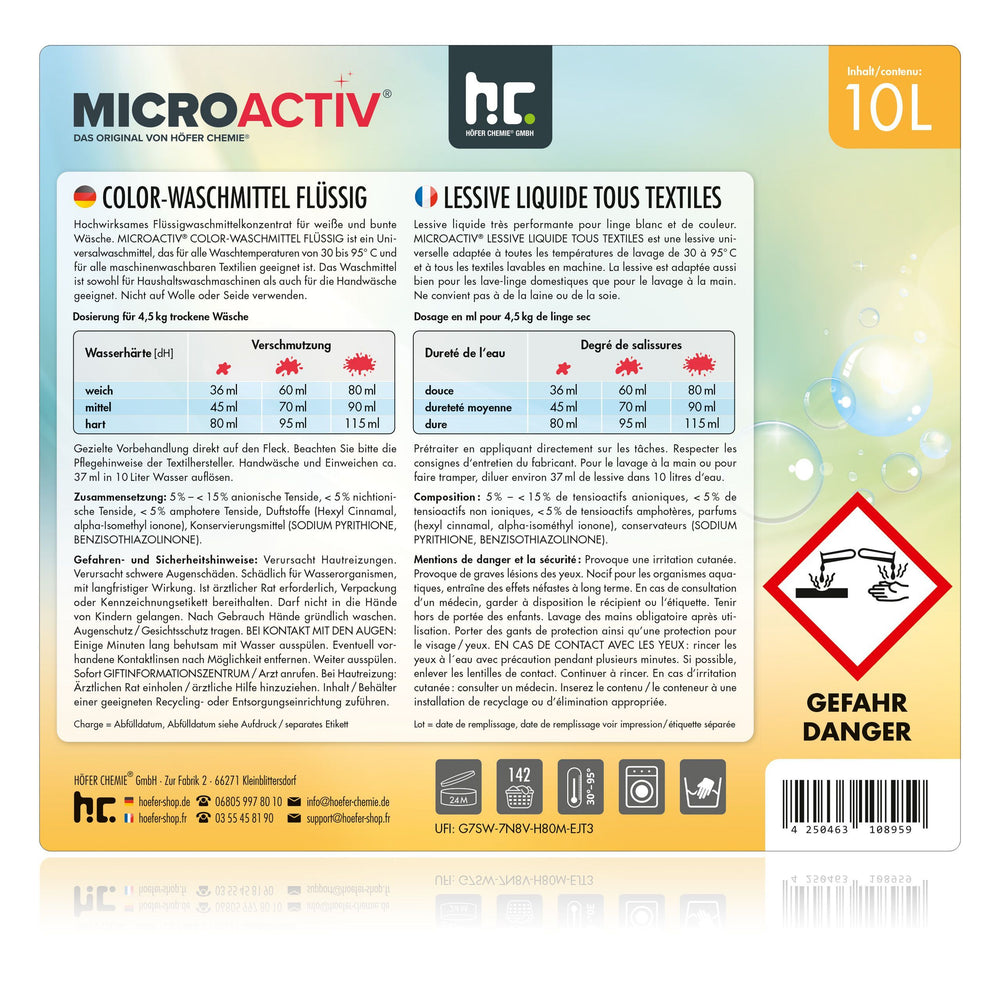 Lessive liquide Microactiv® en bidon de 10 L 10 L Color Waschmittel flüssig