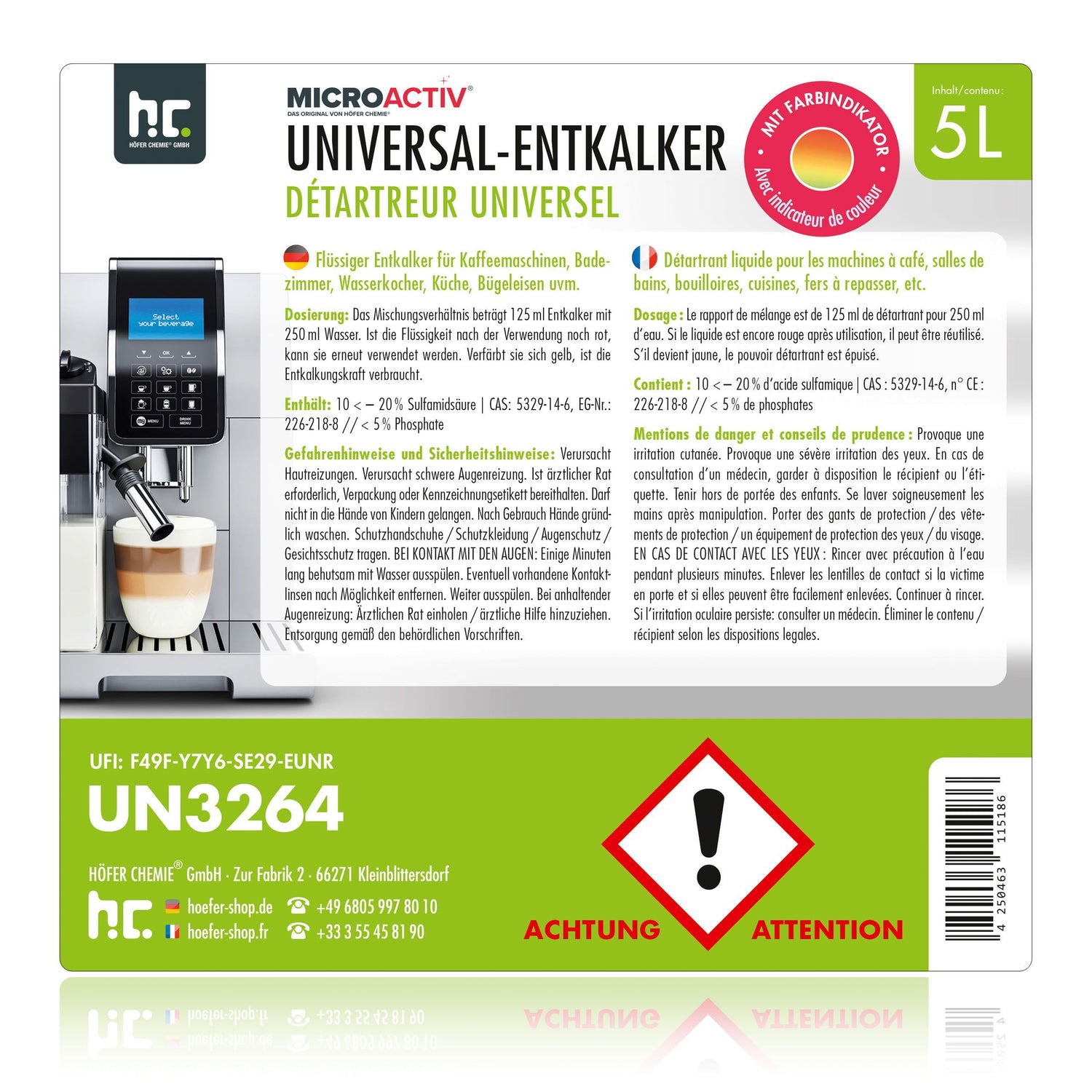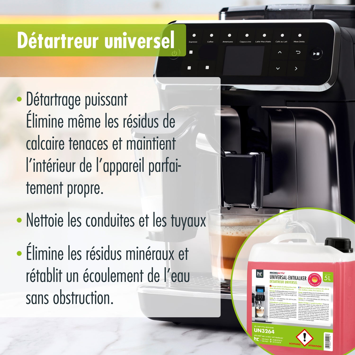 Détartrant universel Microactiv® avec indicateur de couleur pour machines à café entièrement automatiques en bidon de 5 L - 1x 5 L est en rupture de stock et sera expédié dès qu’il sera de retour en stock.