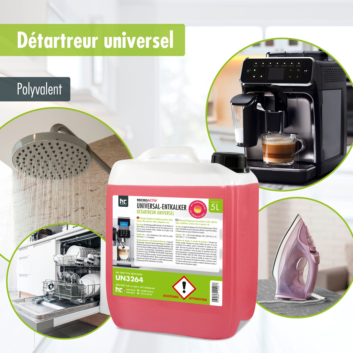 Un bon détartrant est indispensable dans chaque foyer - car selon les régions, notre eau est peu ou très calcaire. C'est pourquoi les appareils qui sont beaucoup en contact avec l'eau doivent être détartrés régulièrement. Cela permet de ménager les matériaux et de maintenir toutes les canalisations libres. Dimensions du bidon : H25 cm x L 19,5 cm x L 14,5 cm.