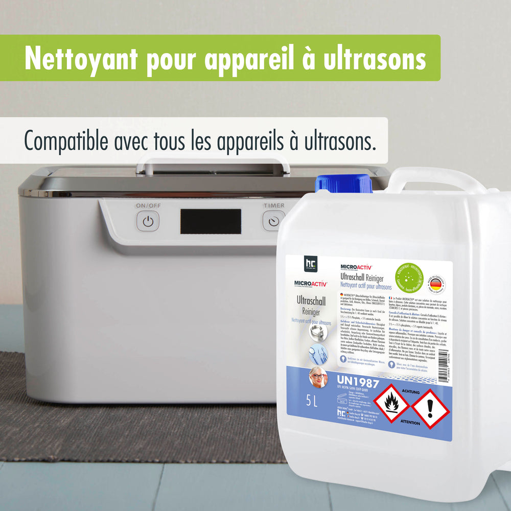 Le nettoyeur à ultrasons Microactiv® de Höfer Chemie convient à une utilisation dans tous les bains à ultrasons de renom. Testez donc vous-même notre meilleur nettoyant à ultrasons au pouvoir nettoyant optimal et commandez votre nettoyant à ultrasons Höfer Chemie en ligne, sans frais de port.