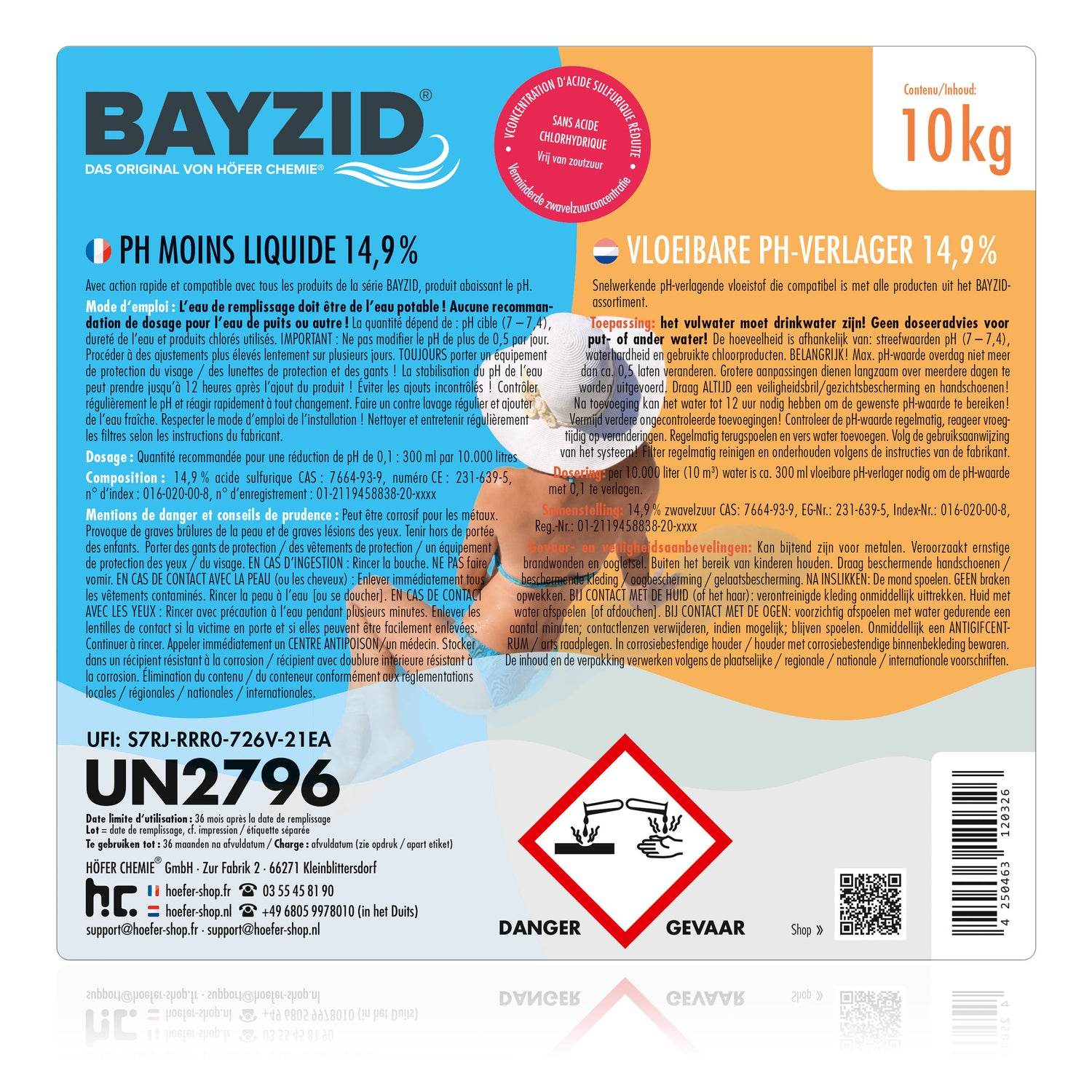 pH moins liquide 14,9% Bayzid® en bidon de 10 KG 10 kg BAYZID® pH Minus flüssig 14,9% für Pools