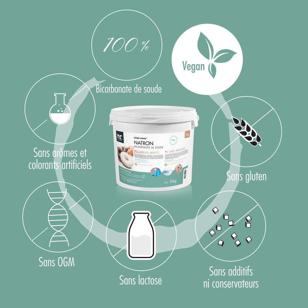Zuiveringszout (natriumbicarbonaat) is een waardevol alternatief voor een breed scala aan schoonmaakmiddelen, huishoudelijke producten en cosmetica in veel ruimtes van uw huishouden. Terwijl steeds meer zogenaamde wondermiddelen in onze kasten terechtkomen, worden oude huismiddeltjes vaak vergeten, ook al zijn ze veel effectiever. Dat geldt ook voor zuiveringszout: milieuvriendelijk en niet-giftig. Onze baking soda is geschikt voor levensmiddelen en daarom ideaal voor alle genoemde toepassingsgebieden. Onze baking soda is afkomstig van synthetische productie op basis van anorganische oorsprong. De basisgrondstoffen, pekel en kalksteen, zijn van natuurlijke oorsprong.